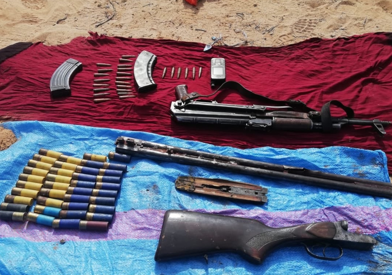 وحسب البلاغ، فقد أسفرت عملية التفتيش المنجزة داخل سيارة رباعية الدفع كان على متنها المشتبه فيهم عن العثور على رزم من مخدر الشيرا تزن حوالي 55 كيلوغراما، وجهازين لرصد وتحديد المواقع، وثلاثة أسلحة بيضاء، بالإضافة إلى غلاف لرصاصة تستخدم في سلاح الكلاشينكوف، بينما مكنت إجراءات التمشيط المنجزة بأرض خلاء تبعد بحوالي 62 كيلومتر في اتجاه السمارة من حجز سلاح كلاشينكوف وخزنتين محشوتين بخمس وعشرين (25) رصاصة، وبندقية للصيد و39 خرطوشة، علاوة على هاتف للاتصال عبر الساتل.